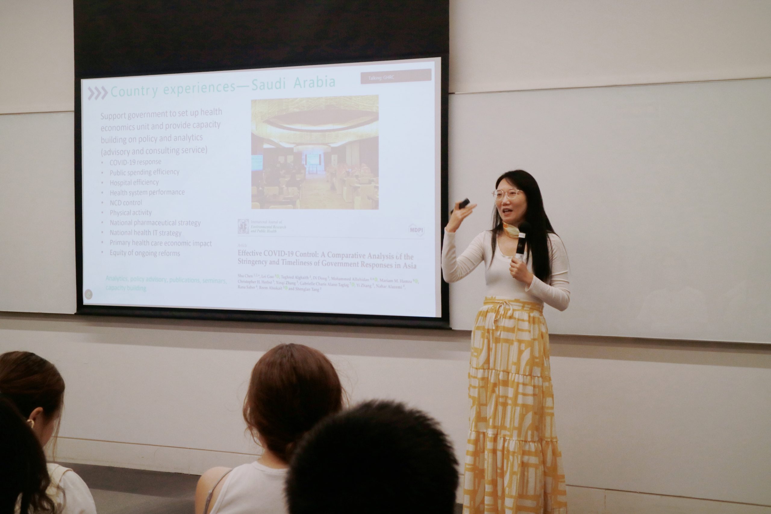 During the event, Dr. Di Dong shared her experiences working at the World Bank, highlighting projects in India, Saudi Arabia, Sierra Leone, and Egypt. She discussed her contributions to tuberculosis elimination programs, health system transformation, and capacity-building initiatives. Dr. Dong also introduced her path into the World Bank through the Young Professionals Program (YPP) and elaborated on the “T-shaped skills framework,” encouraging students to develop both depth in a specialized field and breadth through interdisciplinary experiences to cultivate a well-rounded professional profile.