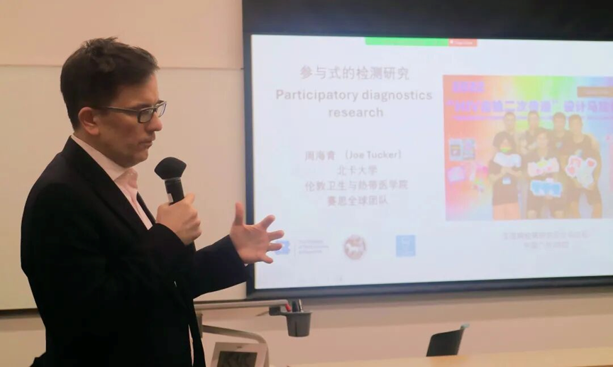 On March 5, Dr. Joseph D. Tucker and Dr. Weiming Tang of the University of North Carolina at Chapel Hill were invited to speak at a participatory design workshop hosted by the Duke Kunshan University Global Health Research Center. Focusing on “Trust, Implementation, and Co-creation: Co-designing Diagnostic Technologies with Communities,” the workshop brought together policymakers, community health practitioners, and researchers to explore how participatory approaches can help align diagnostic innovations with real-world community needs.