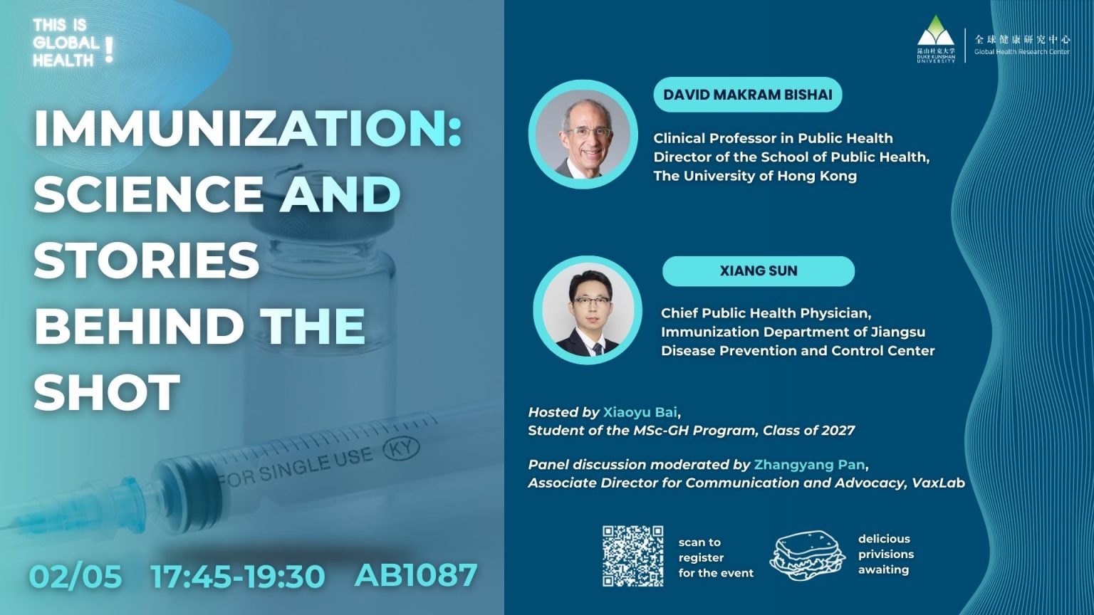 昆山杜克大学全球健康研究中心于2014年创办全球健康系列讲坛,旨在邀请全球健康领域领军人物、科学家及行业杰出者,就全球健康领域的最新研究进展、国际国内发展趋势、全球健康教学与实践经验开展讲座交流,帮助师生和各界合作者拓宽全球视野,促进知识分享,鼓励创新思路,加强学科合作。自2020年起,在兴证全球基金管理公司和宁泉资产管理公司的慷慨支持下,该系列被冠名为“兴泉全球健康系列讲坛”。截至2026年1月,共成功举办了204场讲座活动。