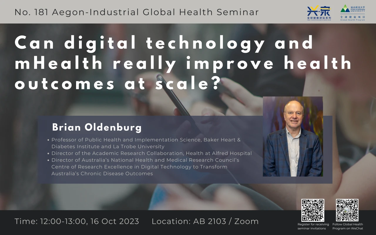 Brian Oldenburg is Professor of Public Health and Implementation Science at the Baker Heart & Diabetes Institute and La Trobe University in Melbourne, Australia. He is the Director of the Academic Research Collaboration in Health at Alfred Hospital, a top university teaching hospital in Melbourne. He is also Director of Australia’s National Health and Medical Research Council’s Centre of Research Excellence in Digital Technology to Transform Australia’s Chronic Disease Outcomes. He specialises in changing health behaviours and the prevention and management of chronic conditions in many countries around the world, particularly in countries in Asia. He has pioneered many technology platforms and digital health solutions to improve chronic disease outcomes. He is also a global expert in implementation research. His research has been continuously funded for more than 40 years.